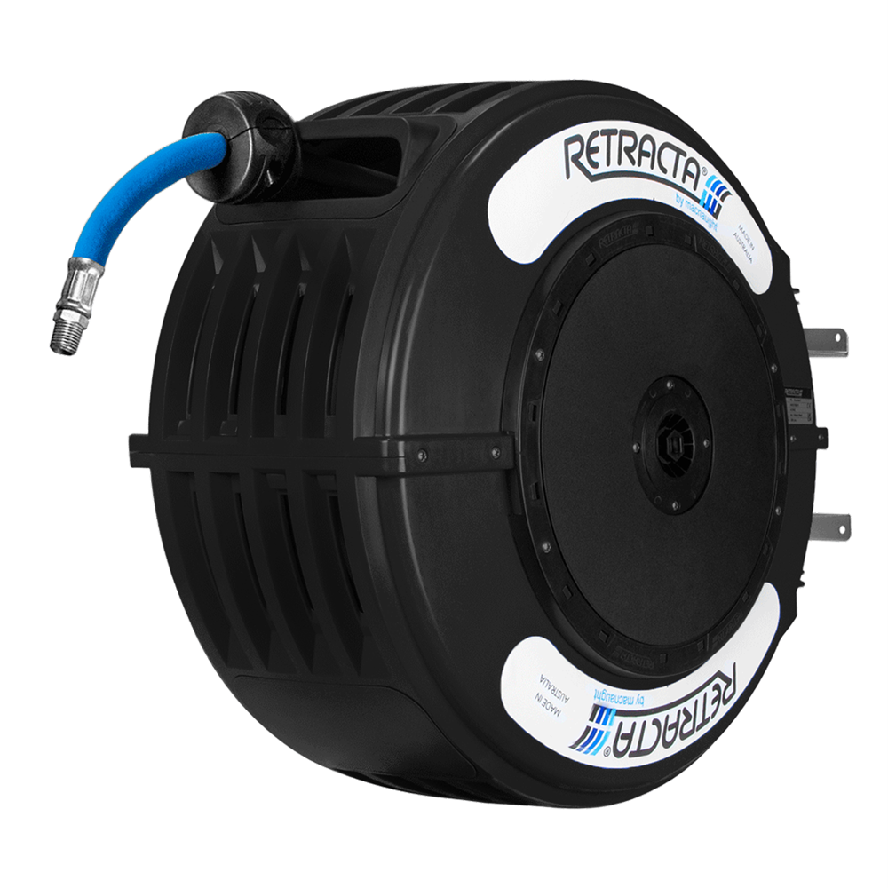 Retracta R3 Series black case Hose Reel – 1/2" (12mm) 25m air/water blue hybrid polymer hose.