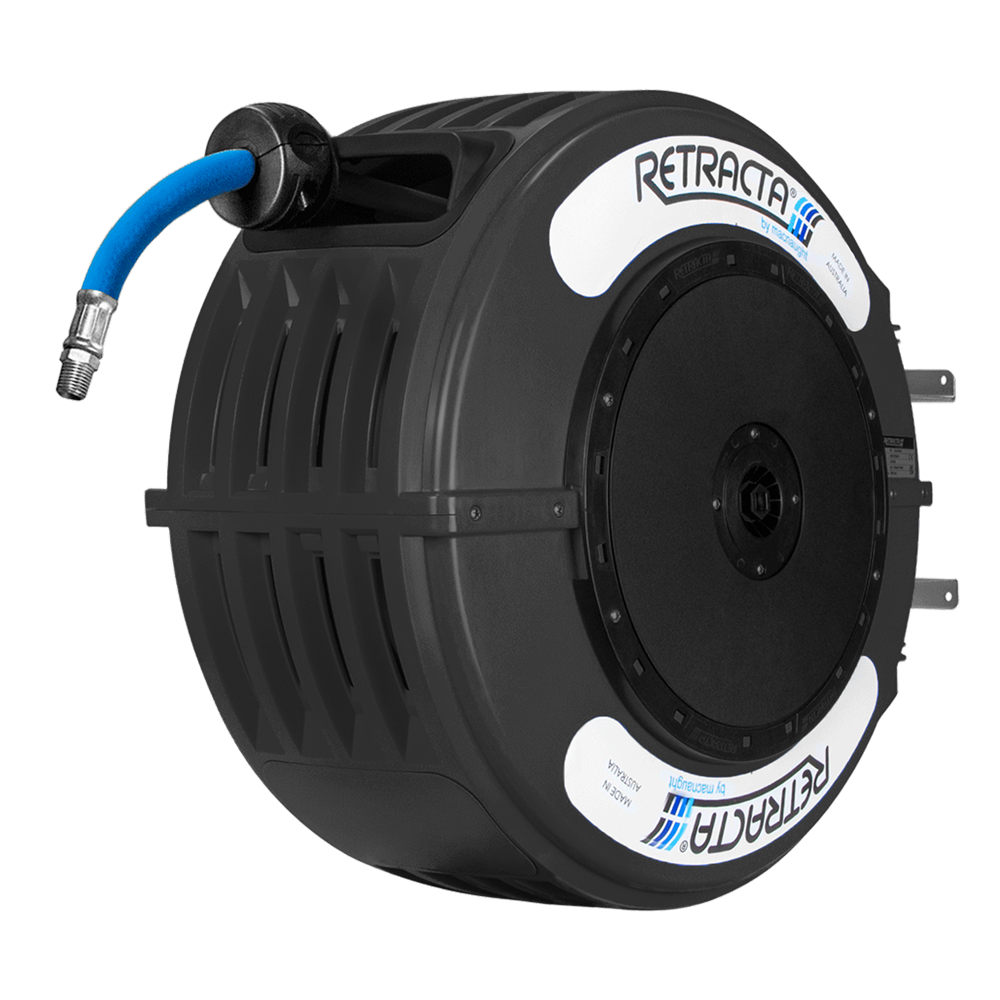 Retracta R3 Series black case Hose Reel - 3/8" (10mm) 25m air/water blue hybrid polymer hose.